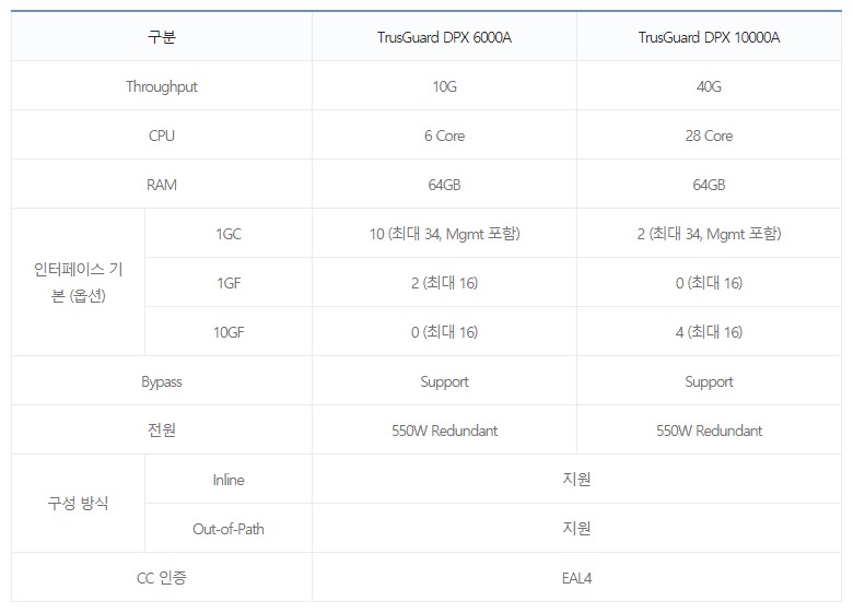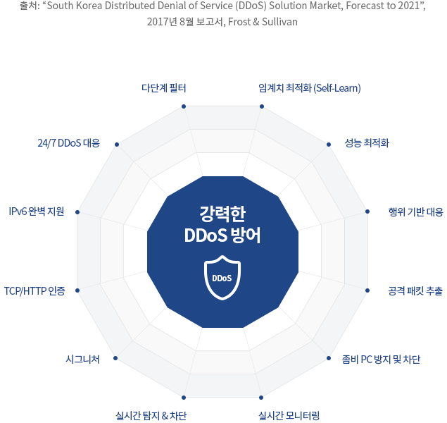 - 저대역폭 DDoS 공격, 신종 DDoS 공격 대응 가능