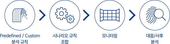 - 지속적인 모니터링과 분석이 필요한 대상에 대해 축적된 패턴을 바탕으로 비정상 행위를 자동적으로 판단하고, 경보하는 자동화된 분석을 제공합니다.