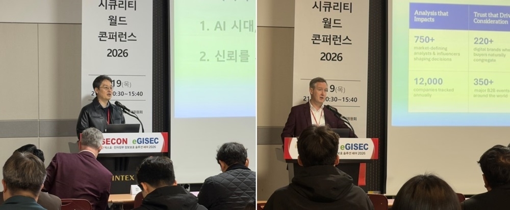 한-영 동시통역 진행물리보안과 사이버보안 아우르는 AI 보안 현황과 과제 논의제25회 세계보안엑스포 및 제14회 전자정부 정보보호 솔루션 페어(SECON & eGISEC2026)의 메인 콘퍼런스인 ‘2026 시큐리티월드 콘퍼런스’가 19일 일산 킨텍스 제1전시장 콘퍼런스룸 212호에서 열렸다. ‘AI 시대, 신뢰를 세우는 보안’(Empowering Trust in the Age of AI)을 주제로 한-영 동시통역으로 진행된 이날 콘퍼런스는 권태경 연세대학교 교수의 △AI 시대, 신뢰를 세우는 보안이라는 주제의 키노트로 시작됐다.권태경 교수는 AI의 등장과 발전을 논하며 “AI는 초기 단계부터 생각과 추론 그리고 거짓말도 포함돼 악용 가능성이 있어 본질적으로 AI 보안의 필요성을 내포하고 있다”라고 설명..